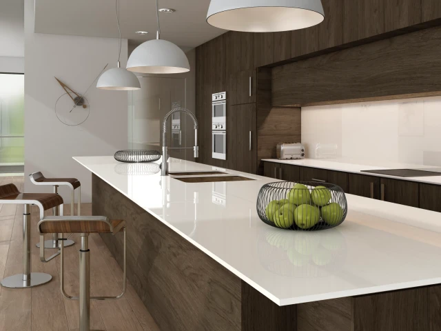 Ascale Alpi White to spiek kwarcowy stworzony dla najbardziej wymagających klientów poszukujących czystej, jasnej bieli bez żadnych graficznych przeszkód. Jednolity kolor wprowadza do wnętrz poczucie czystości, przestronności i nowoczesności, idealnie wpisując się w aranżacje minimalistyczne, spokojne i ponadczasowe.