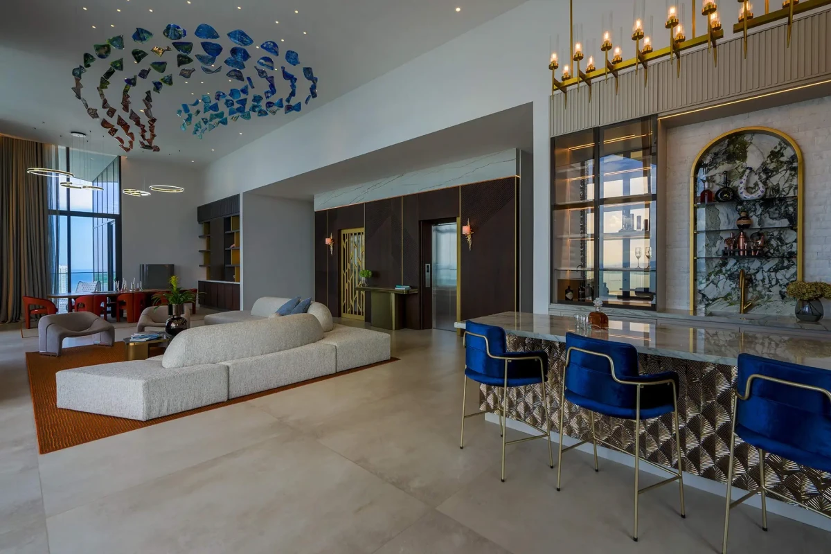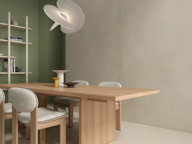Ciepła kolorystyka i subtelne grafiki materiału doskonale komponują się z drewnem, metalem i naturalnymi tekstyliami, wprowadzając przytulność i wizualną harmonię.