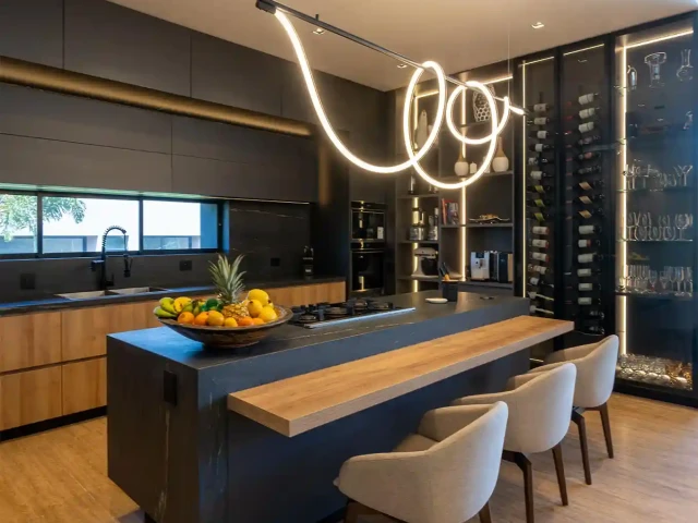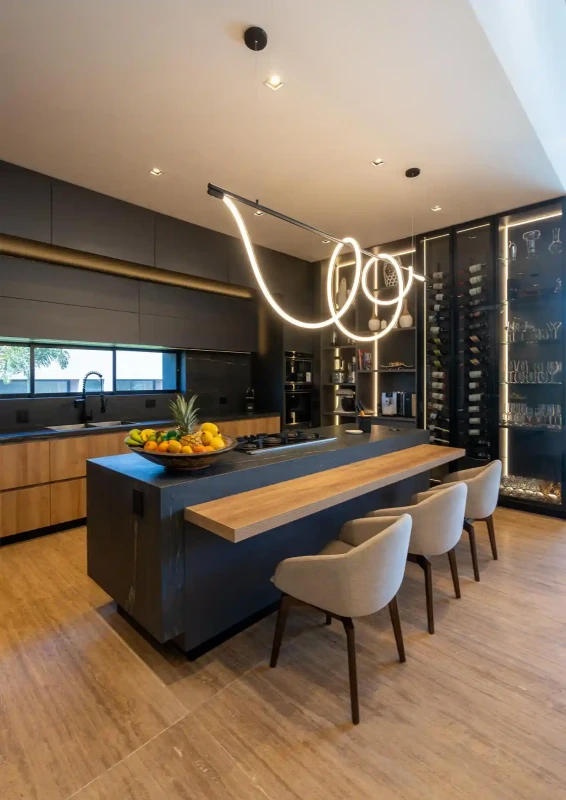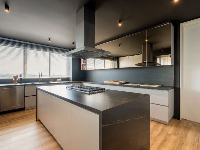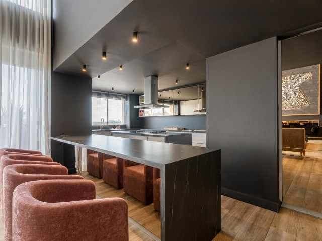 głęboką czernią i kontrastowym użyleniem, podkreślającym ekskluzywny charakter wnętrz.