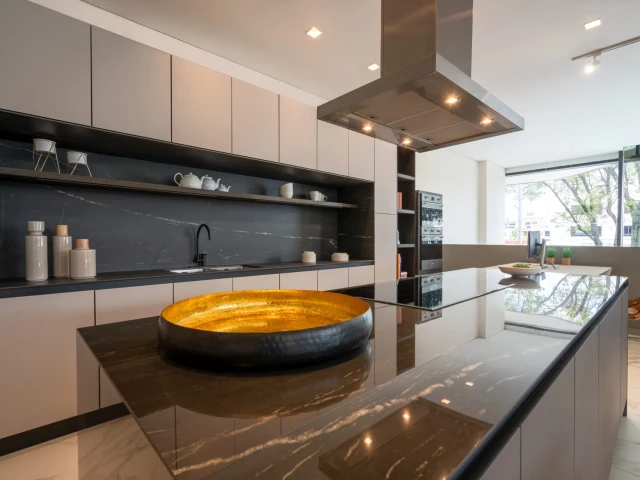Ta mineralna kompozycja oferuje doskonałą równowagę pomiędzy surową elegancją a bogactwem wizualnym, czyniąc każdą realizację wyrazistą deklaracją stylu. Belvedere jest idealnym wyborem do kuchni oraz wnętrz, w których liczy się luksusowa estetyka bez rezygnacji z trwałości i siły naturalnych materiałów.