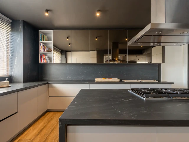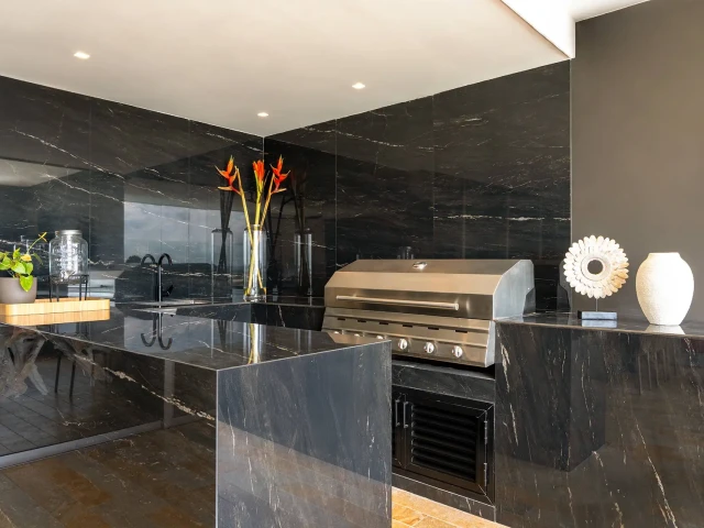 Ascale Belvedere to spiek kwarcowy inspirowany jednym z najbardziej egzotycznych granitów świata, pochodzącym z kamieniołomów w Angoli. Materiał wyróżnia się imponującym i wyrafinowanym charakterem. Intensywnie czarne tło stanowi głęboką bazę, na której organiczne, białe żyłki rozkładają się w naturalny i elegancki sposób, nadając powierzchni wyjątkową dynamikę i prestiż.