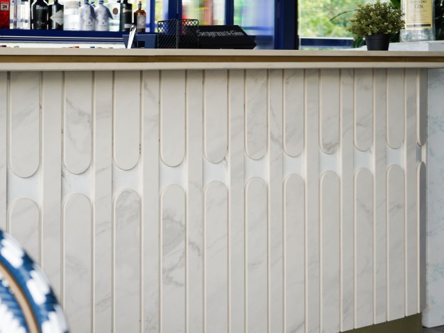 jasną, elegancką kolorystyką inspirowaną włoskim marmurem,
