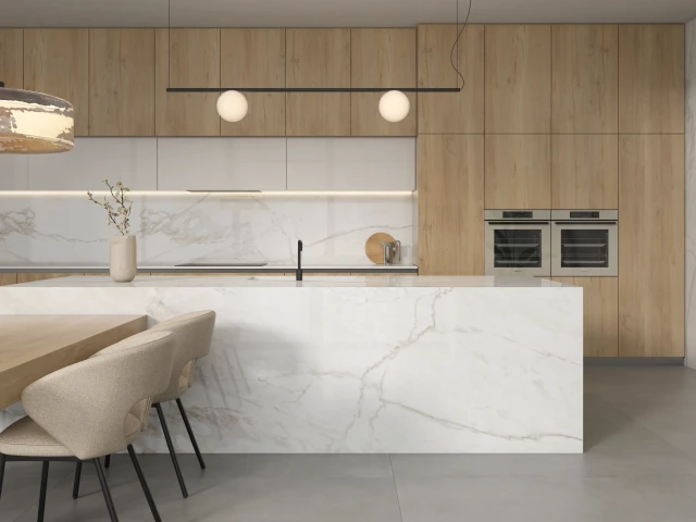 Ascale Grassi White to spiek kwarcowy inspirowany klasycznym marmurem pochodzenia włoskiego, zaprojektowany z myślą o projektach, które łączą tradycję z nowoczesnością. Jego harmonijne, białe tło zostało subtelnie przecięte delikatnym, szarym użyleniem, wzbogaconym o ciepłe refleksy i miękkie niuanse, które nadają powierzchni głębi i naturalnej szlachetności.