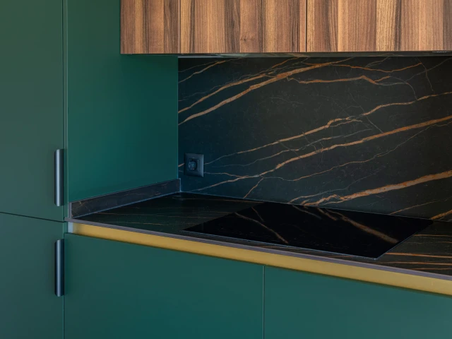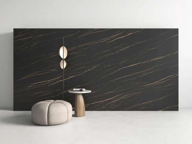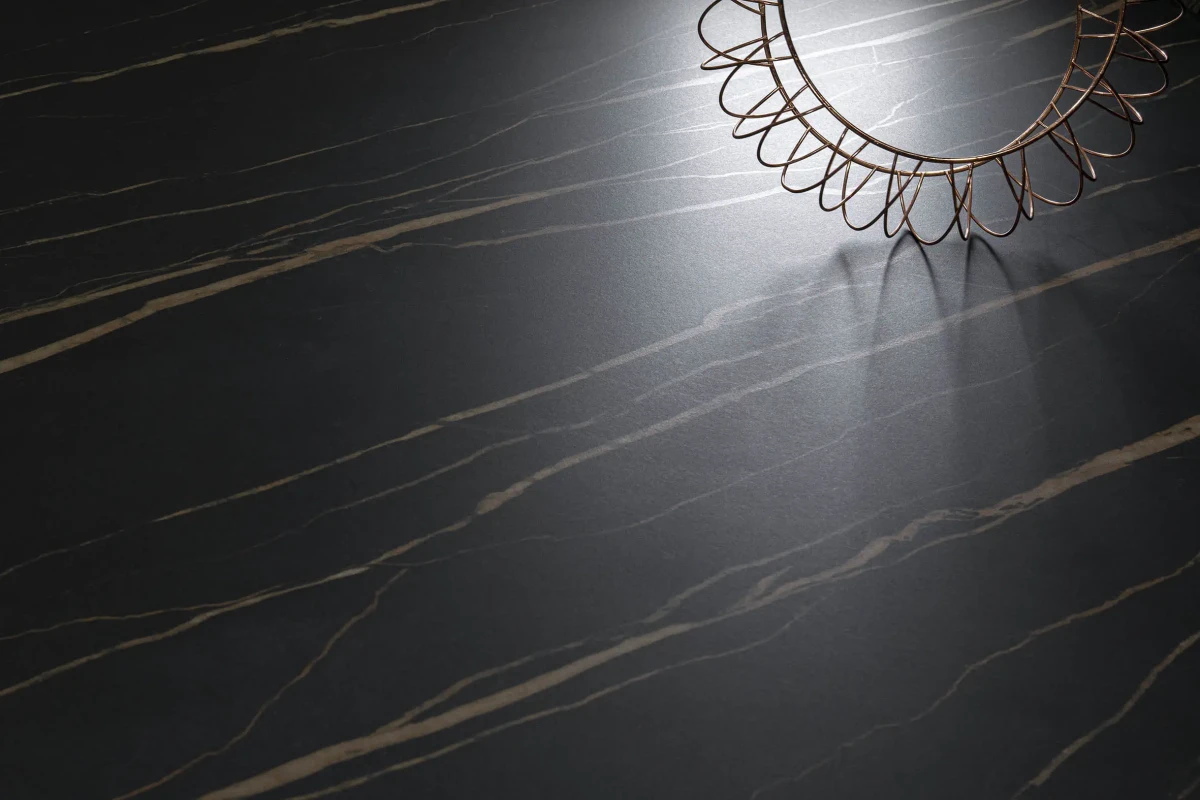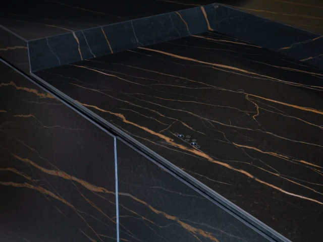 Ascale Laurent Black to spiek kwarcowy dla osób poszukujących mocnego efektu wizualnego i nowoczesnej elegancji inspirowanej czarnym marmurem. Głęboka, ciemna baza kontrastuje tu z dynamiczną siecią intensywnie pomarańczowych żył, tworząc kompozycję o wyrazistym charakterze i niepowtarzalnej osobowości.
