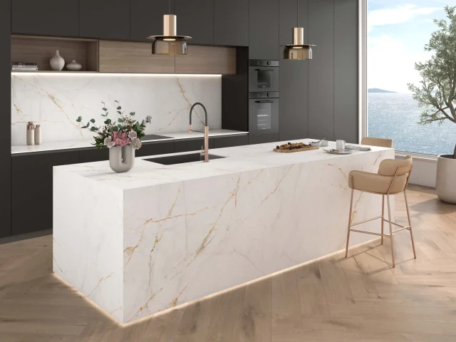 Każda złota żyła tego modelu jest hołdem dla naturalnego piękna oraz pasji, która inspiruje projektantów wnętrz do tworzenia przestrzeni pełnych wyrafinowania. Lucca Gold łączy klasyczną elegancję marmuru z nowoczesną technologią spieków kwarcowych, oferując trwałość, odporność i luksusowy efekt wizualny.