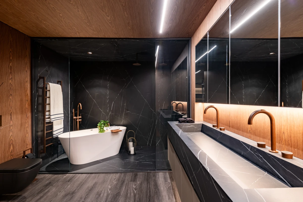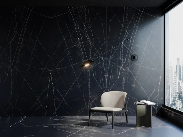 Ascale Negro Marquina to nasz spiek na wzór czarnego marmuru pochodzącego z północnej Hiszpanii, z regionu Kraju Basków. Jest synonimem elegancji i ponadczasowej prostoty, dzięki głębokiej czerni przeplatanej wyraźnymi, białymi żyłami, które nadają powierzchni dynamiki i charakteru.