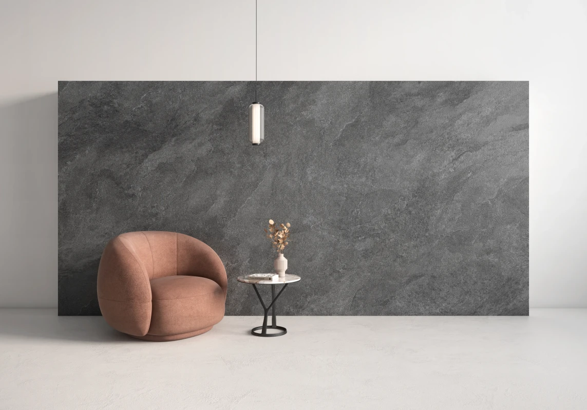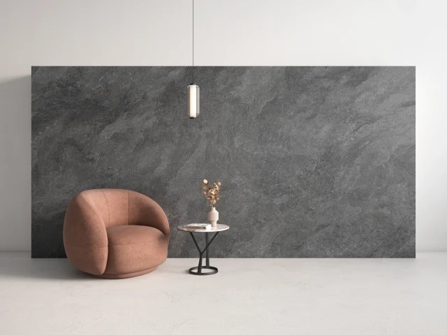 Moon Black sprawdza się w projektach, które cenią równowagę, ponadczasowość i subtelną elegancję bez przesadnej dekoracyjności. Subtelna i kontrolowana grafika czyni materiał idealnym do minimalistycznych aranżacji lub stonowanych kontrastów z drewnem i metalem.