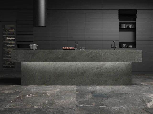 Ascale Moon Black to powierzchnia inspirowana wulkanicznymi skałami, wyróżniająca się ciemnym, stonowanym tłem wzbogaconym delikatnymi, jasnymi akcentami graficznymi, które dodają głębi i wizualnej wyrazistości. Dyskretny, a zarazem mocny charakter spieku przywodzi na myśl mineralną elegancję skał magmowych powstałych w ekstremalnych warunkach, wprowadzając do wnętrz spokojną i nowoczesną estetykę.