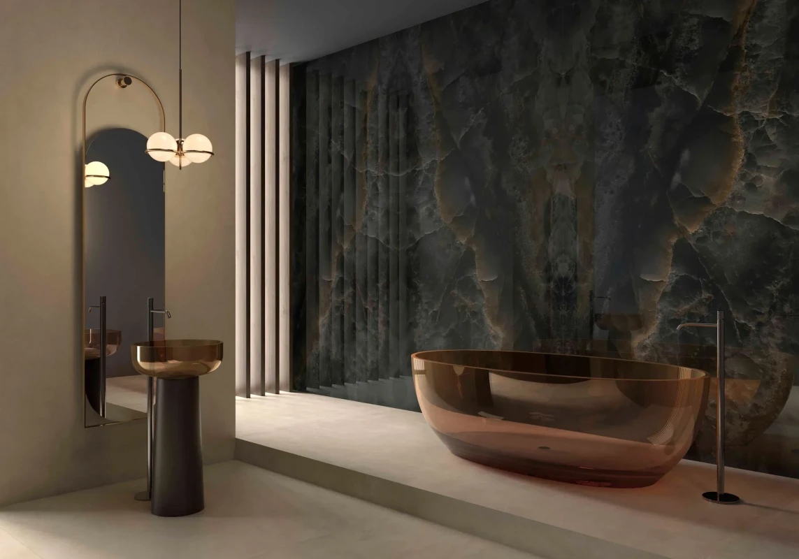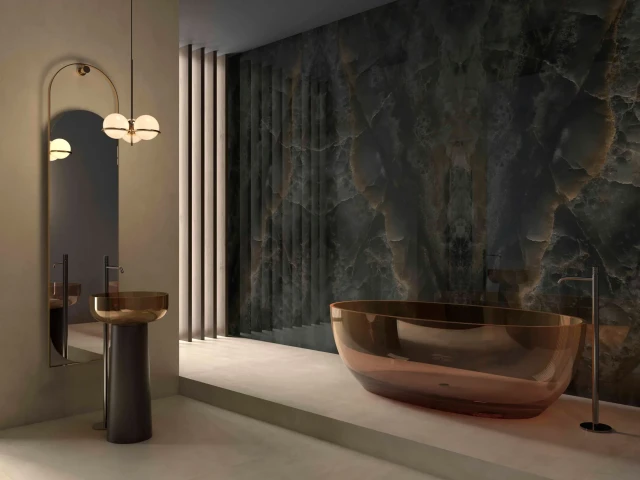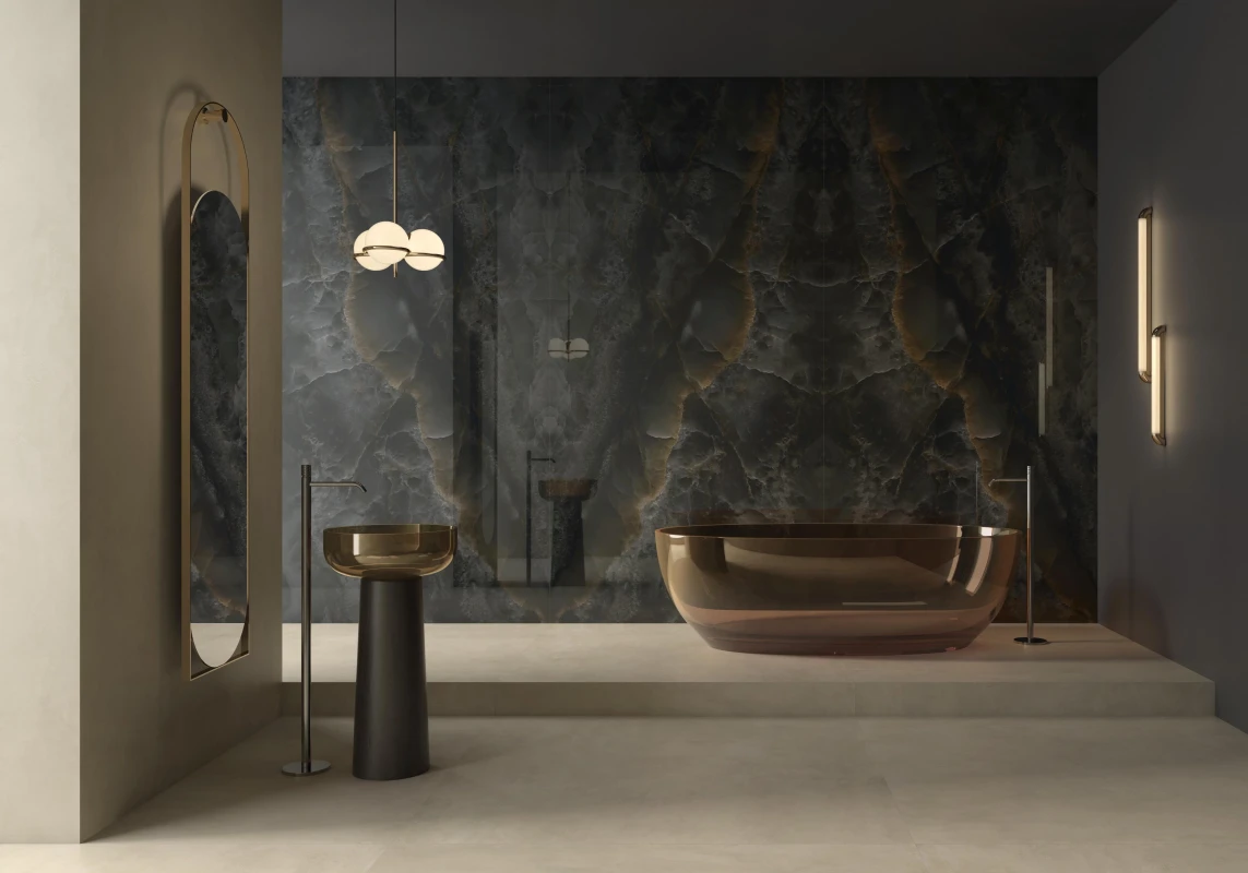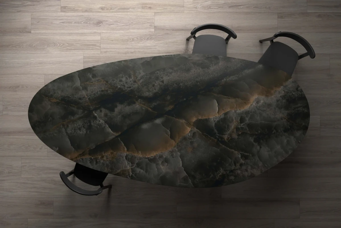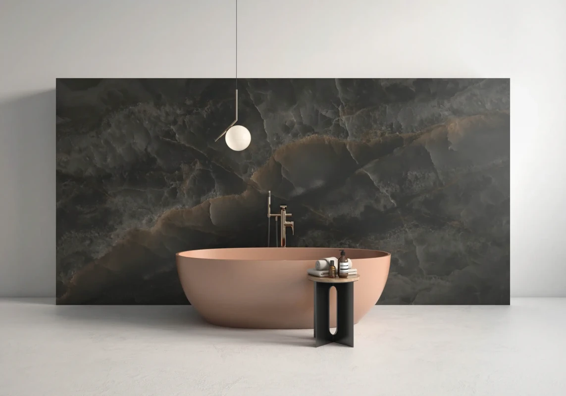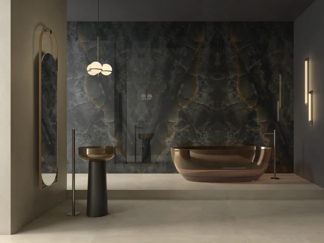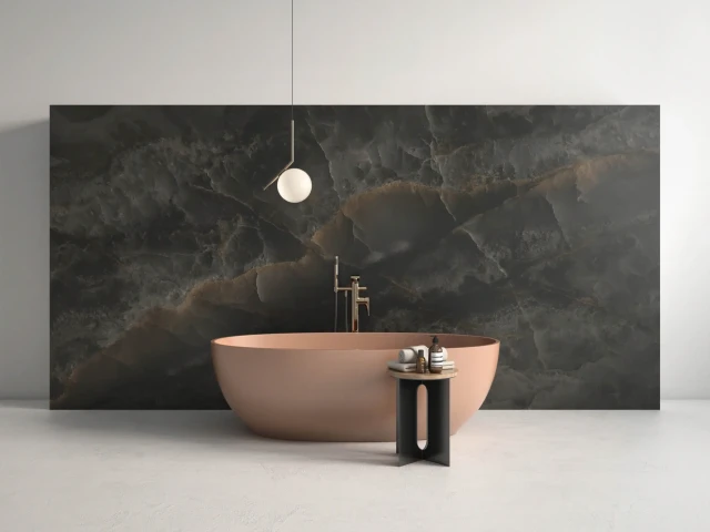 Połączenie ciemnej bazy z subtelnym blaskiem użylenia wprowadza do wnętrz kontrolowany dramatyzm, który podkreśla luksusowy charakter przestrzeni. Inspiracja najbardziej ekskluzywnymi odmianami naturalnego onyksu sprawia, że Onice Black zamienia wnętrza w ponadczasowo eleganckie kompozycje, w których design staje się sztuką, a każdy detal świadczy o prestiżu i klasie.