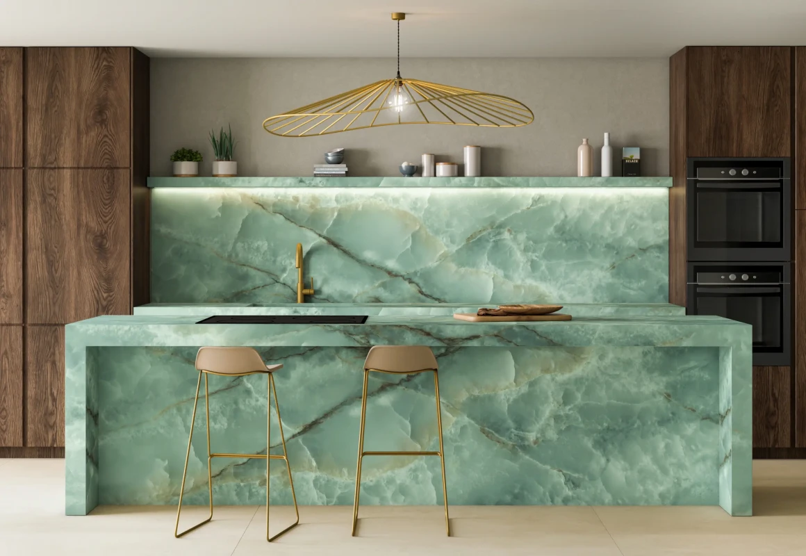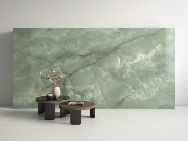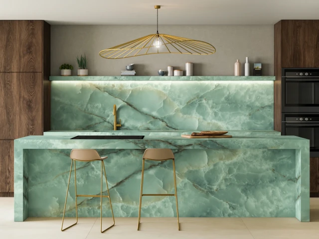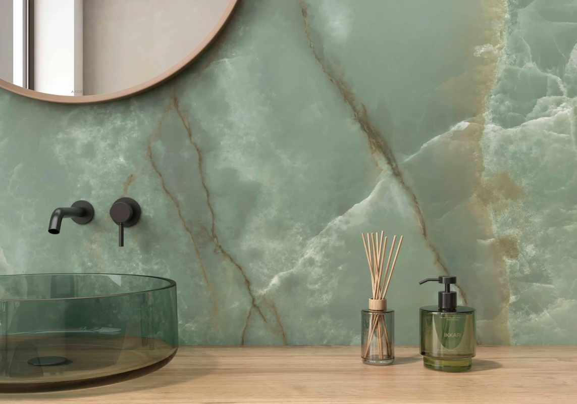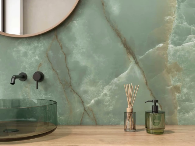 Powierzchnia Onice Seagreen tworzy wnętrza pełne wyciszenia i równowagi, w których natura i design współistnieją w idealnej proporcji. Charakterystyczna kolorystyka oraz subtelna gra żył nadają przestrzeniom świeżości i głębi, jednocześnie nie dominując aranżacji.