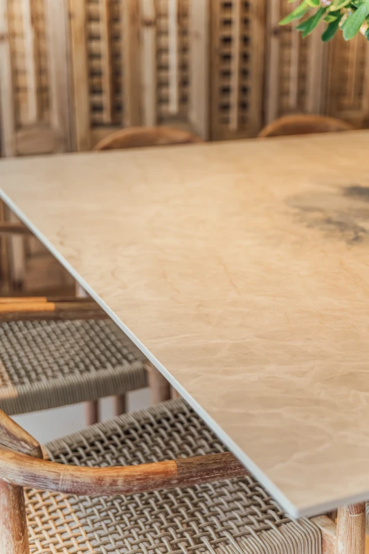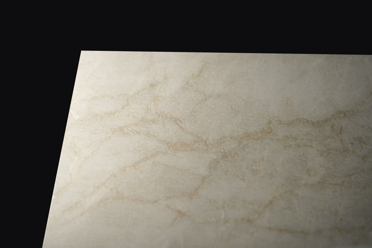 Subtelna grafika powierzchni przywodzi na myśl wykończenia spotykane w szlachetnych kamieniach jubilerskich. Delikatne przejścia tonalne i spokojny rysunek nadają materiałowi wyjątkową lekkość wizualną, dzięki czemu doskonale odnajduje się zarówno w nowoczesnych, jak i klasycznych aranżacjach. Taj Mahal wprowadza do przestrzeni światło, elegancję i wrażenie wyrafinowanego spokoju.