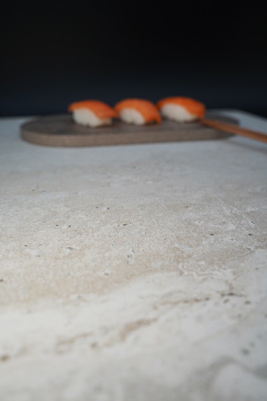 Feel – matowa, przyjemna w dotyku powierzchnia, podkreślająca naturalny charakter trawertynu i subtelną strukturę spieku.