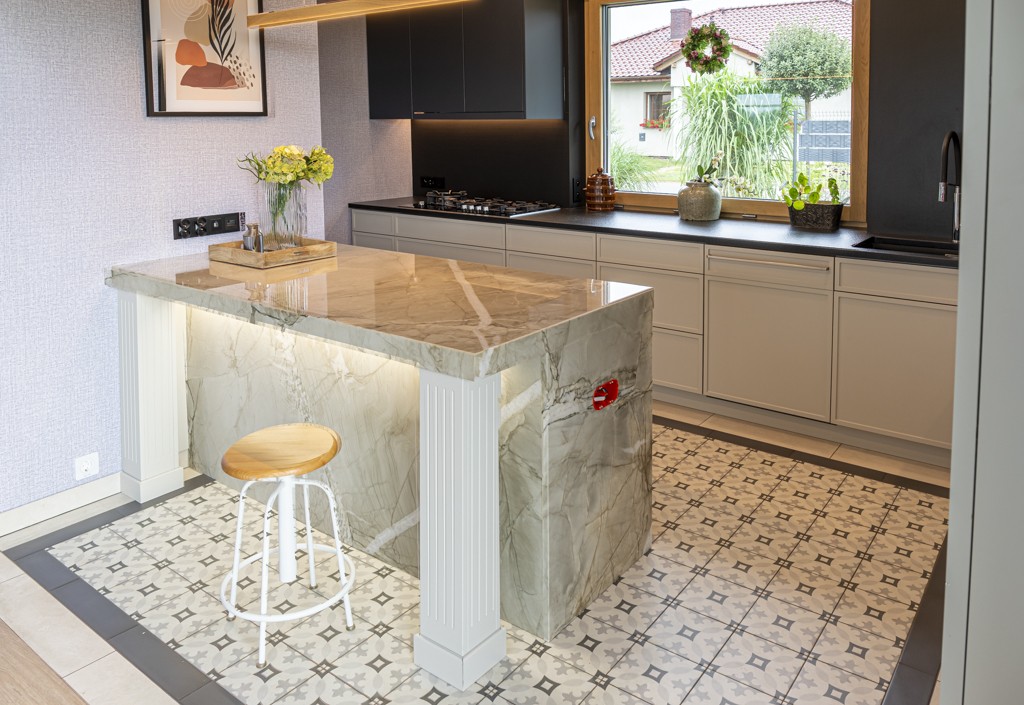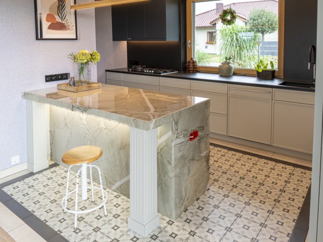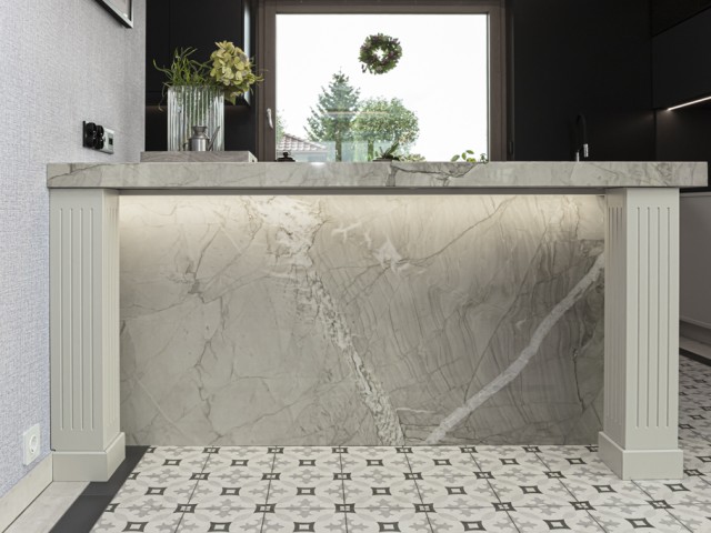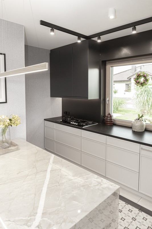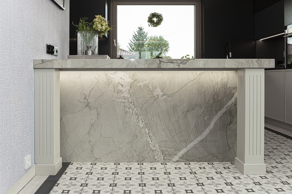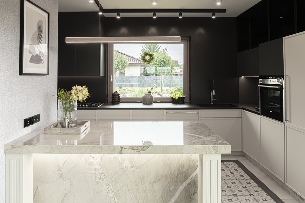 Kwarcyt Apollo White+Granit Nero Assoluto Antico