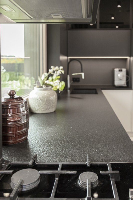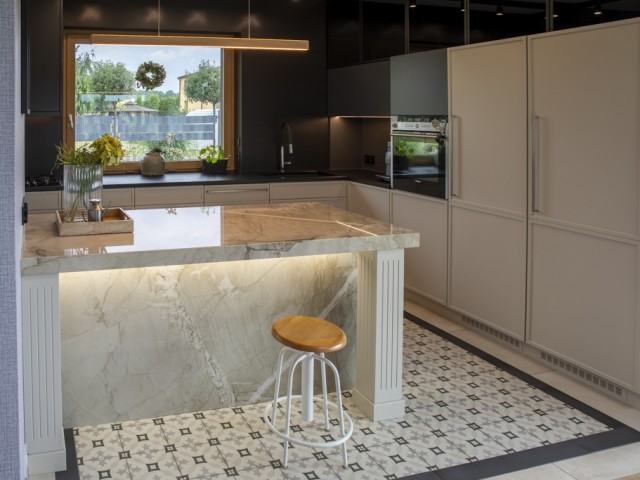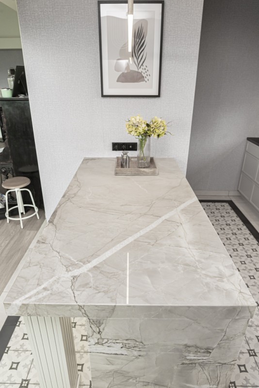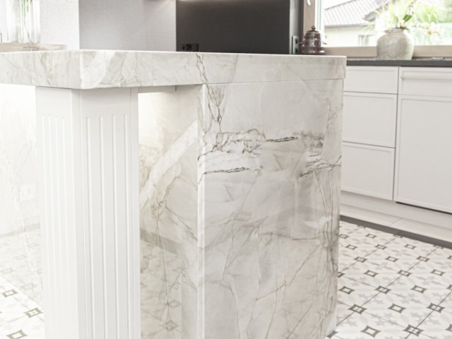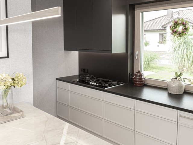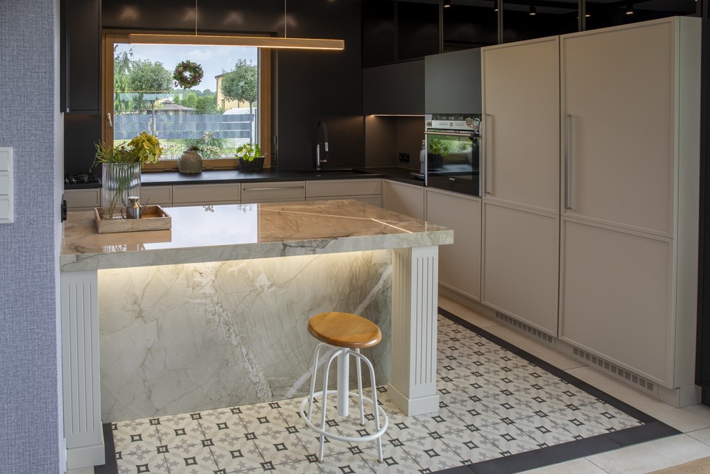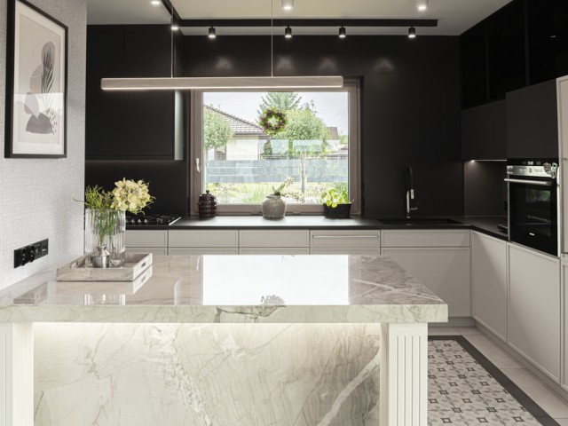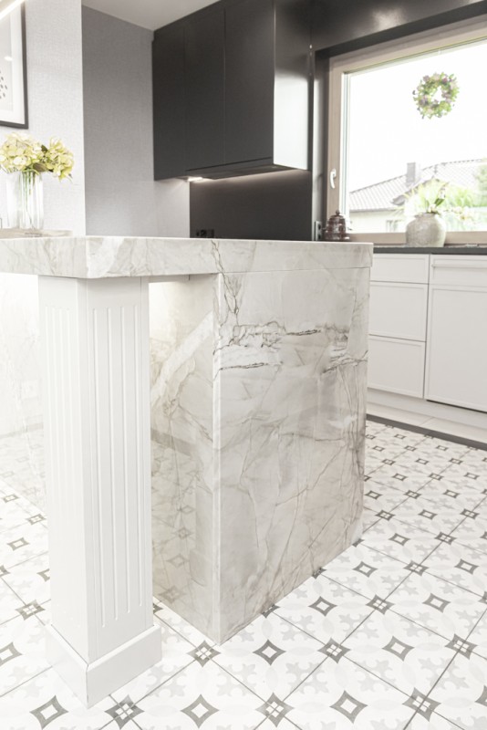 Kwarcyt Apollo White+Granit Nero Assoluto Antico
