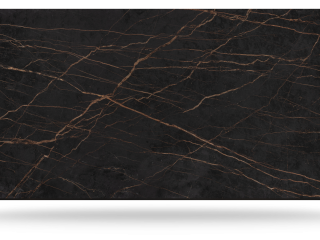Spiek kwarcowy Dekton Laurent to materiał o wyjątkowej i wyrazistej estetyce, która łączy intensywne odcienie złota, brązu i miedzi z subtelnymi, ciemniejszymi tonami. Jego powierzchnia imituje wygląd naturalnego marmuru, z charakterystycznymi, szerokimi żyłkami, które wprowadzają do wnętrza elegancki, luksusowy akcent. Wzory te tworzą głębię, nadając kamieniowi niepowtarzalny charakter. Dekton Laurent charakteryzuje się wysoką odpornością na zarysowania, plamy, wysokie temperatury i wilgoć, co sprawia, że jest niezwykle trwały i odporny na intensywne użytkowanie. Materiał ten jest również odporny na promieniowanie UV, co zapewnia jego estetykę przez długi czas. Dzięki swojej wszechstronności i eleganckiemu wyglądowi, spiek kwarcowy Dekton Laurent doskonale sprawdza się na blatach kuchennych, łazienkowych, posadzkach, okładzinach ściennych czy elewacjach. Jego ciepła kolorystyka i wyjątkowy wzór wnoszą do wnętrz luksusowy, ale jednocześnie naturalny akcent, który pasuje zarówno do nowoczesnych, jak i klasycznych aranżacji