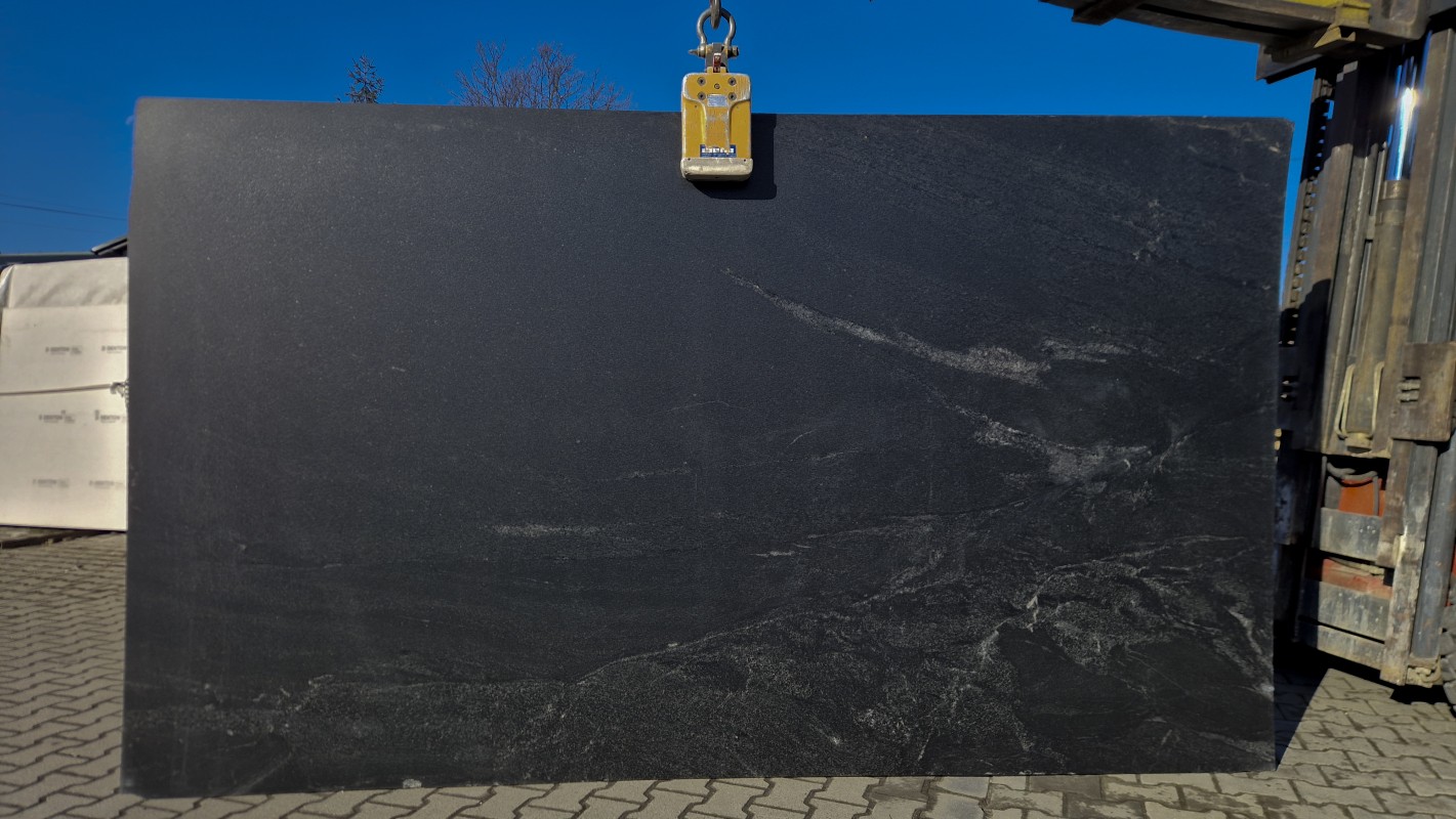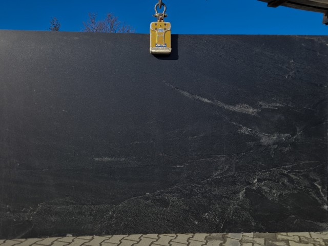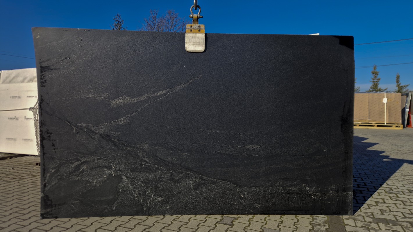 Granit Preto Negresco to elegancki kamień naturalny o głębokiej, grafitowo-czarnej barwie z subtelnymi, jasnymi użyleniami. Jego charakterystyczna, lekko dynamiczna struktura nadaje powierzchni wyjątkowej głębi i sprawia, że każda płyta jest niepowtarzalna. Dzięki swojej stonowanej kolorystyce doskonale wpisuje się zarówno w nowoczesne, minimalistyczne wnętrza, jak i bardziej klasyczne aranżacje.