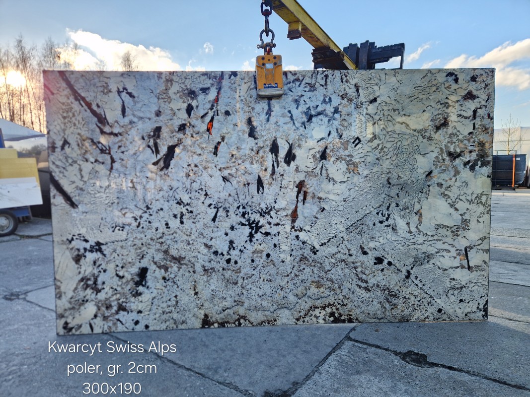 Granit Swiss Alps to niezwykle efektowny kamień inspirowany surowym pięknem alpejskich krajobrazów. Jego jasna, lodowo-szara baza przełamana jest dynamicznym rysunkiem w postaci nieregularnych żył, kontrastowych wtrąceń oraz ciemniejszych akcentów w odcieniach grafitu i czerni, miejscami wzbogaconych ciepłymi tonami. Polerowana powierzchnia nadaje kamieniowi głębi i eleganckiego połysku, podkreślając naturalną strukturę i bogactwo detalu, dzięki czemu każda płyta stanowi unikatowy element aranżacji. Swiss Alps łączy spektakularny wygląd z doskonałymi parametrami technicznymi, wyróżniając się wysoką odpornością na zarysowania, ścieranie oraz działanie wysokich temperatur.