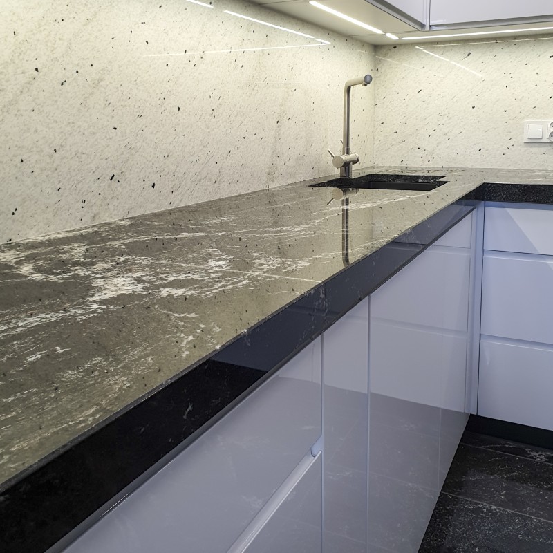 Dzięki swojej wyjątkowej estetyce i doskonałym właściwościom, granit Via Lactea znajduje szerokie zastosowanie w architekturze i designie. Idealnie nadaje się na blaty kuchenne i łazienkowe, posadzki, schody oraz parapety. Jest również często wykorzystywany w eleganckich elewacjach, kominkach i elementach dekoracyjnych, gdzie jego głęboka czerń i kontrastowe wzory nadają przestrzeniom ekskluzywny i ponadczasowy wygląd. Jego uniwersalny charakter sprawia, że doskonale współgra z jasnymi wnętrzami, naturalnym drewnem oraz metalicznymi akcentami, tworząc wyjątkowe, stylowe kompozycje.