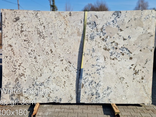Granit White Babilon to elegancki kamień naturalny o jasnej, subtelnej kolorystyce. Jego powierzchnia łączy odcienie bieli i kremu z delikatnymi szarymi smugami, tworząc harmonijny i ponadczasowy wzór. Struktura jest równomierna, z drobnymi i średnimi ziarnami, co nadaje mu estetyczny wygląd i sprawia, że pasuje zarówno do nowoczesnych, jak i klasycznych wnętrz.