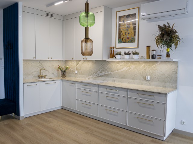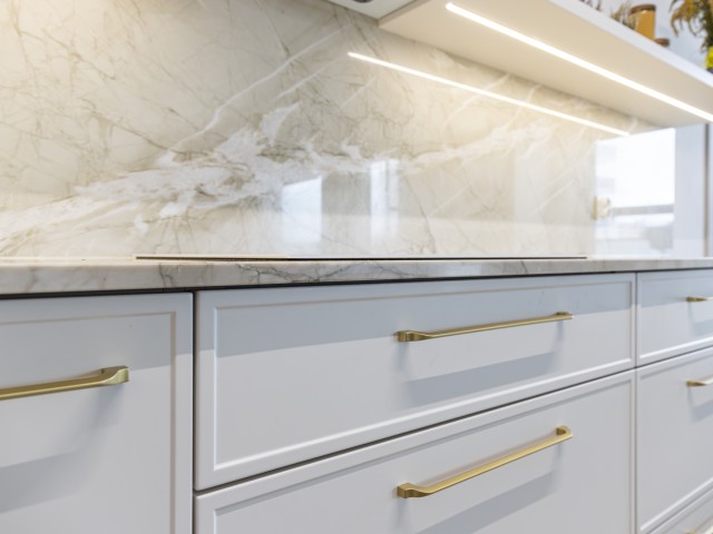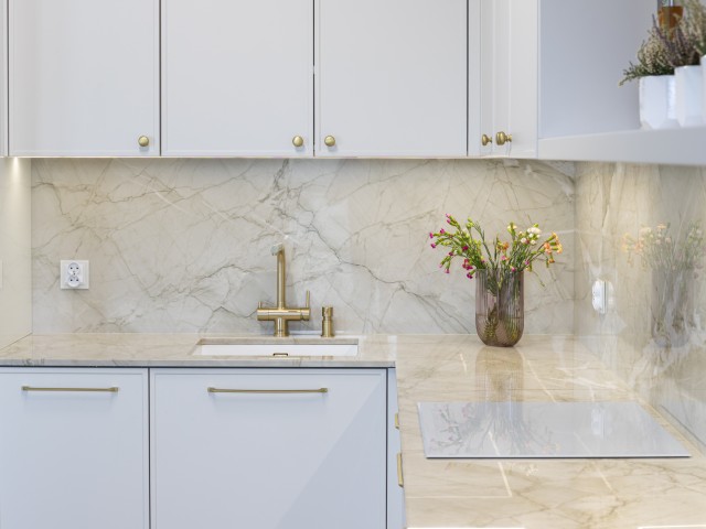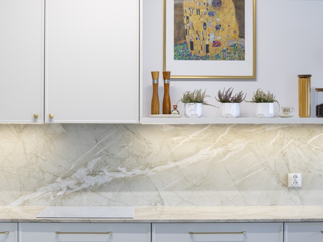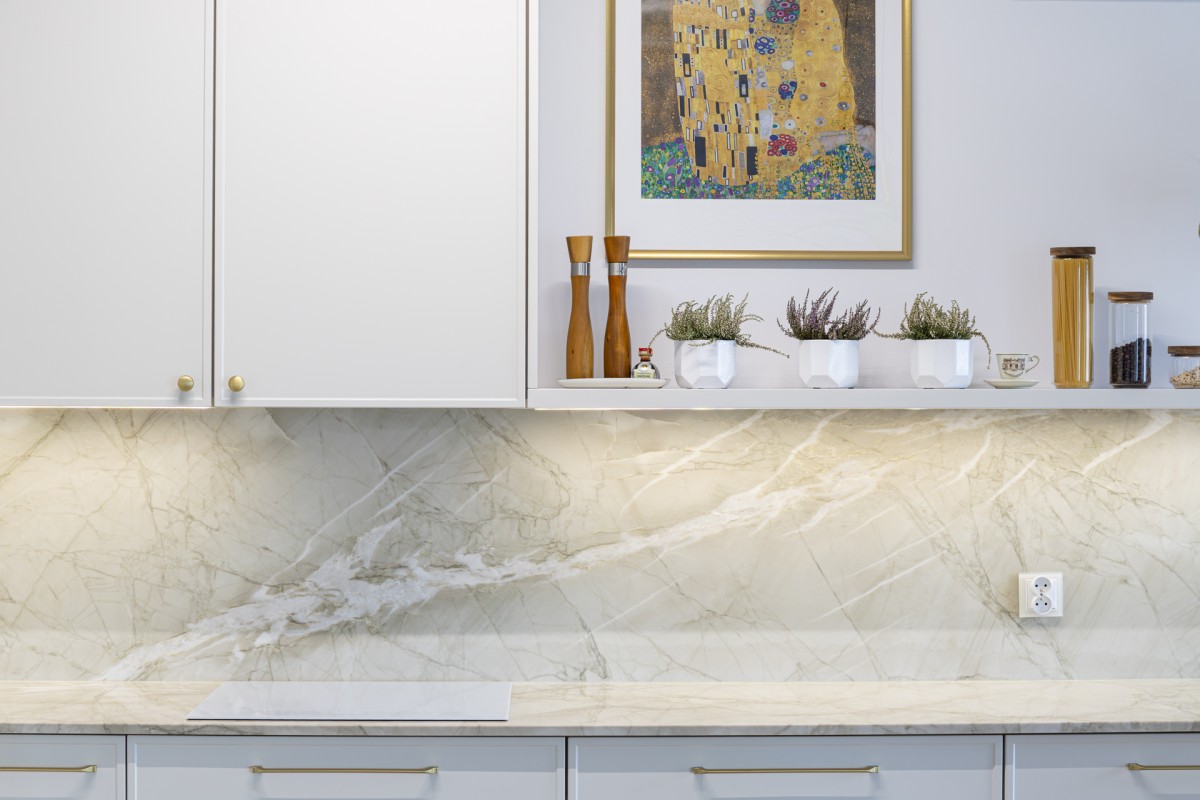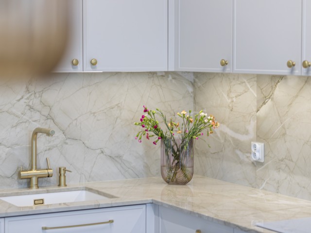 Kwarcyt Apollo White to rodzaj kwarcytu, naturalnego kamienia, który cieszy się popularnością w aranżacjach wnętrz i budownictwie dzięki swoim wyjątkowym właściwościom oraz estetyce. Wyróżnia się jasnobiałą lub kremową barwą, często z delikatnymi, szarymi lub srebrzystymi żyłkami, które nadają mu elegancki wygląd. Posiada gładką i jednorodną teksture, choć żyłki mogą tworzyć unikalne, niepowtarzalne wzory. Wytrzymuje wysokie temperatury, dzięki czemu jest idealny na blaty kuchenne czy kominki. Jest wyjątkowo trwały i odporny na ścieranie, co czyni go doskonałym wyborem do miejsc intensywnie użytkowanych.