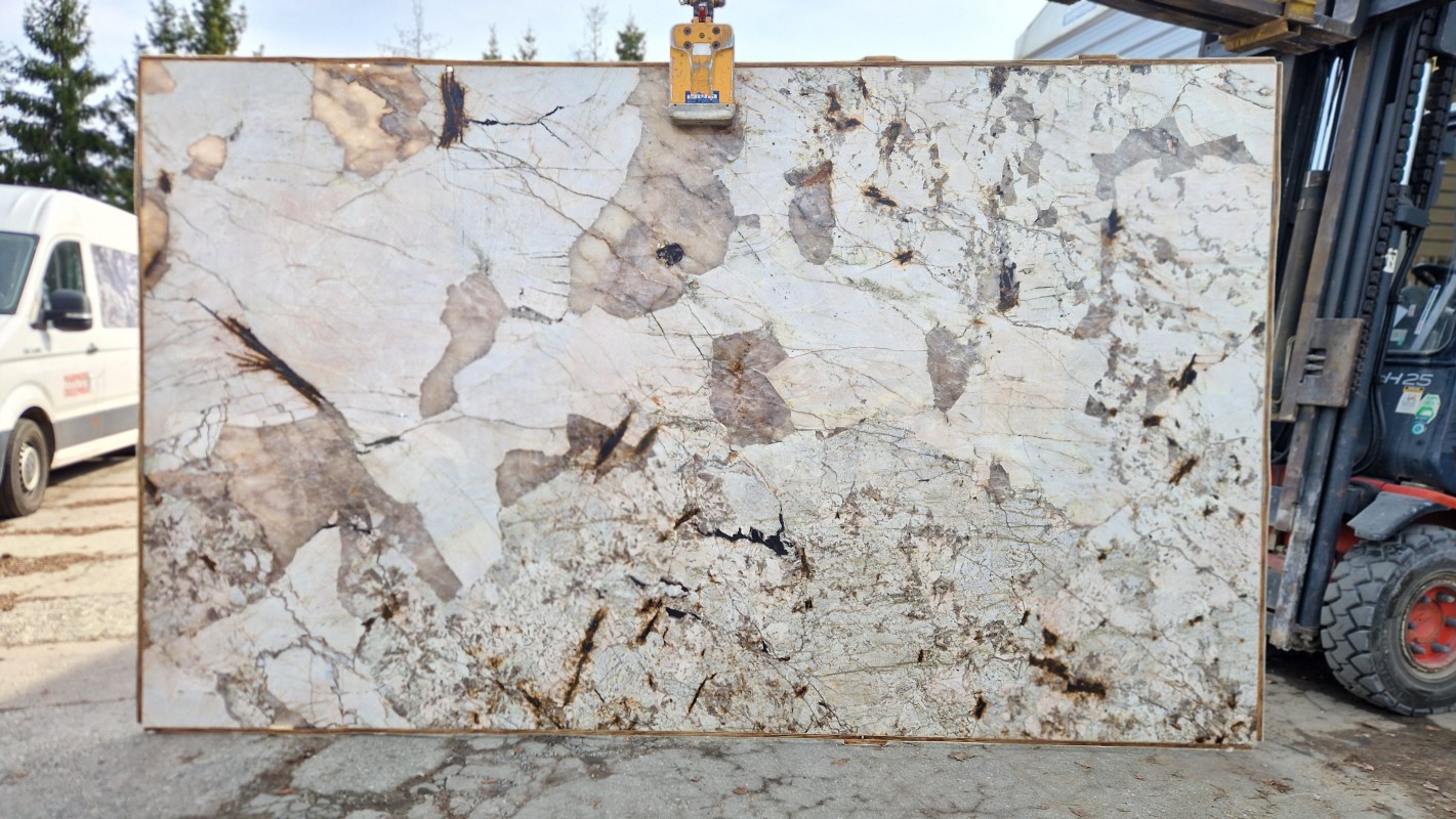 Kwarcyt Patagonia to niezwykle efektowny kamień naturalny o wyjątkowej, artystycznej estetyce, który łączy w sobie różnorodne barwy i tekstury. Charakteryzuje się wyrazistym kontrastem pomiędzy jasnymi partiami – często w odcieniach bieli, beżu i kremu – a ciemniejszymi żyłami i plamami w kolorach czerni, brązu, szarości czy złota. Jego wygląd przypomina abstrakcyjne malarstwo, dzięki czemu jest często wykorzystywany jako centralny element aranżacji, np. w formie dekoracyjnych ścian, blatów czy wysp kuchennych. Niektóre płyty kwarcytu Patagonia posiadają półprzezroczyste fragmenty, które można efektownie podświetlić, uzyskując spektakularny efekt świetlny i jeszcze bardziej podkreślając jego unikalną strukturę. To jeden z najbardziej popularnych i cenionych kamieni naturalnych na rynku, wybierany zarówno przez projektantów wnętrz, jak i architektów ze względu na swoją estetykę, trwałość i wszechstronność.