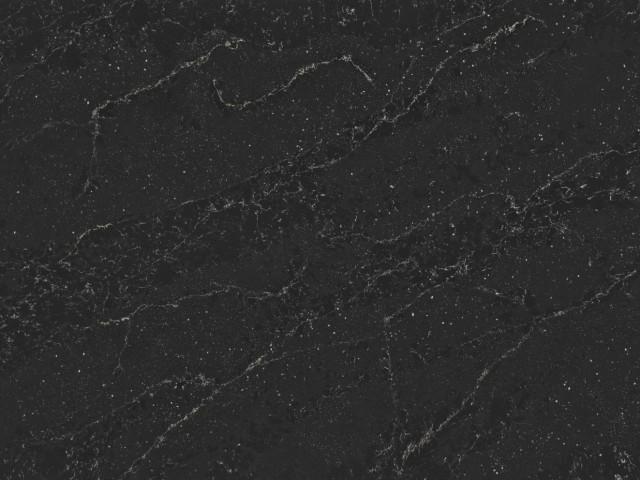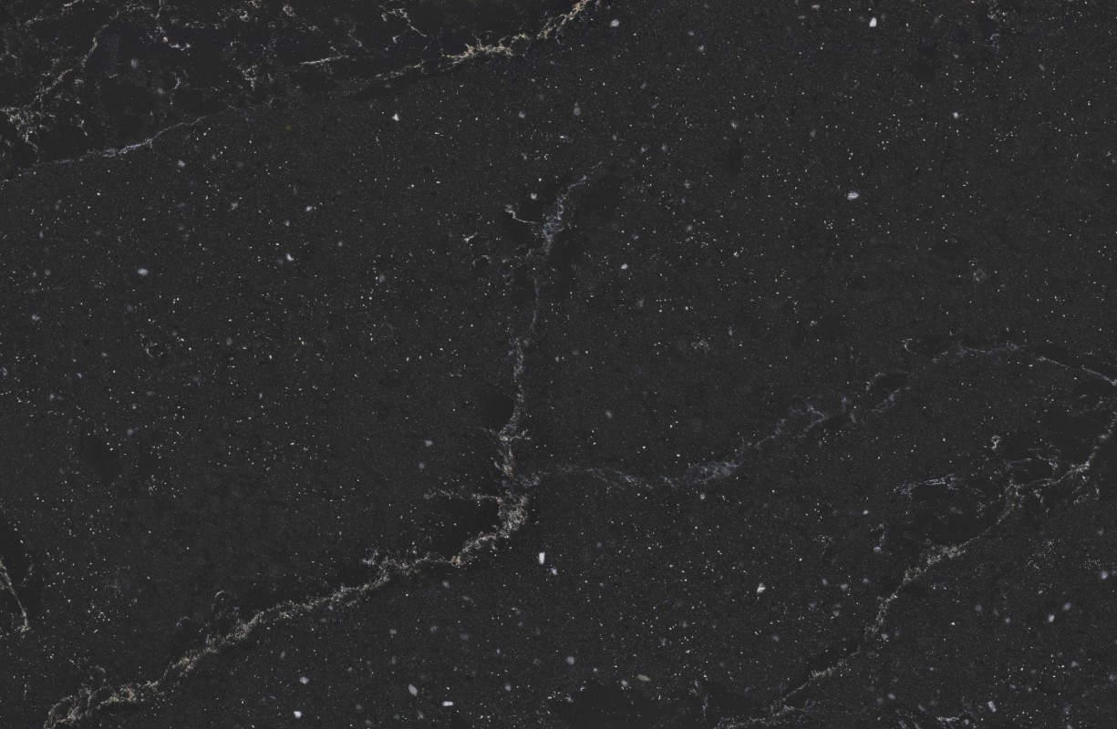Silestone Romantic Ash to kolor z kolekcji Le Chic firmy Cosentino, który łączy intensywne inkrustacje ziaren i rzeki mineralnej z głębokim, czarnym tłem oraz subtelnymi akcentami „ashen blue”. Wzór przypomina Drogę Mleczną na nocnym niebie — materiał jest dramatyczny, elegancki i jednocześnie bardzo dekoracyjny.