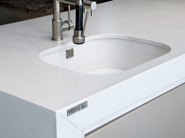 Silestone White Storm14 sprawdza się w miejscach, gdzie estetyka i trwałość są kluczowe. Można go stosować jako: